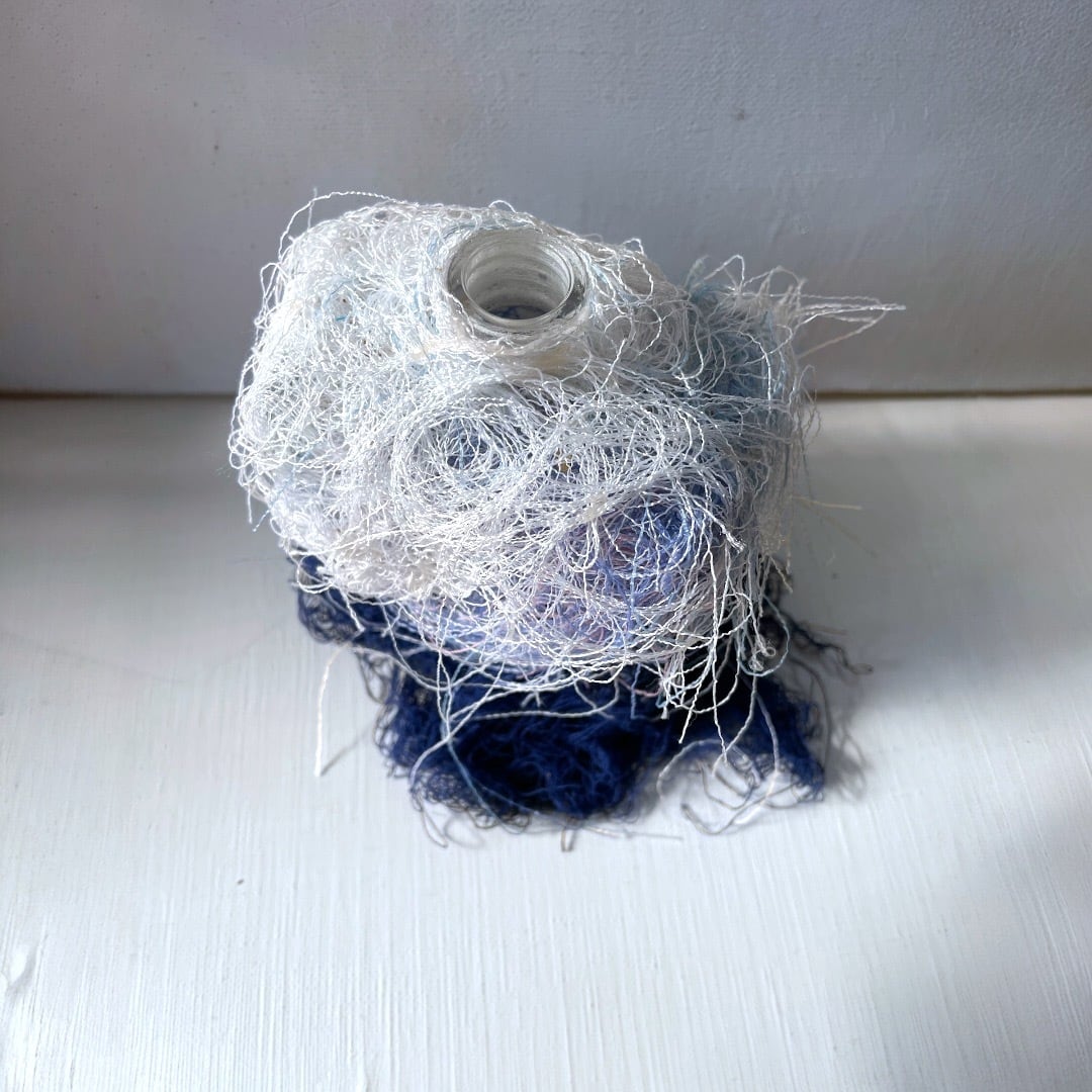 唯一無二のBINシリーズは、廃棄された瓶に古布や糸を装飾したアート作品です。