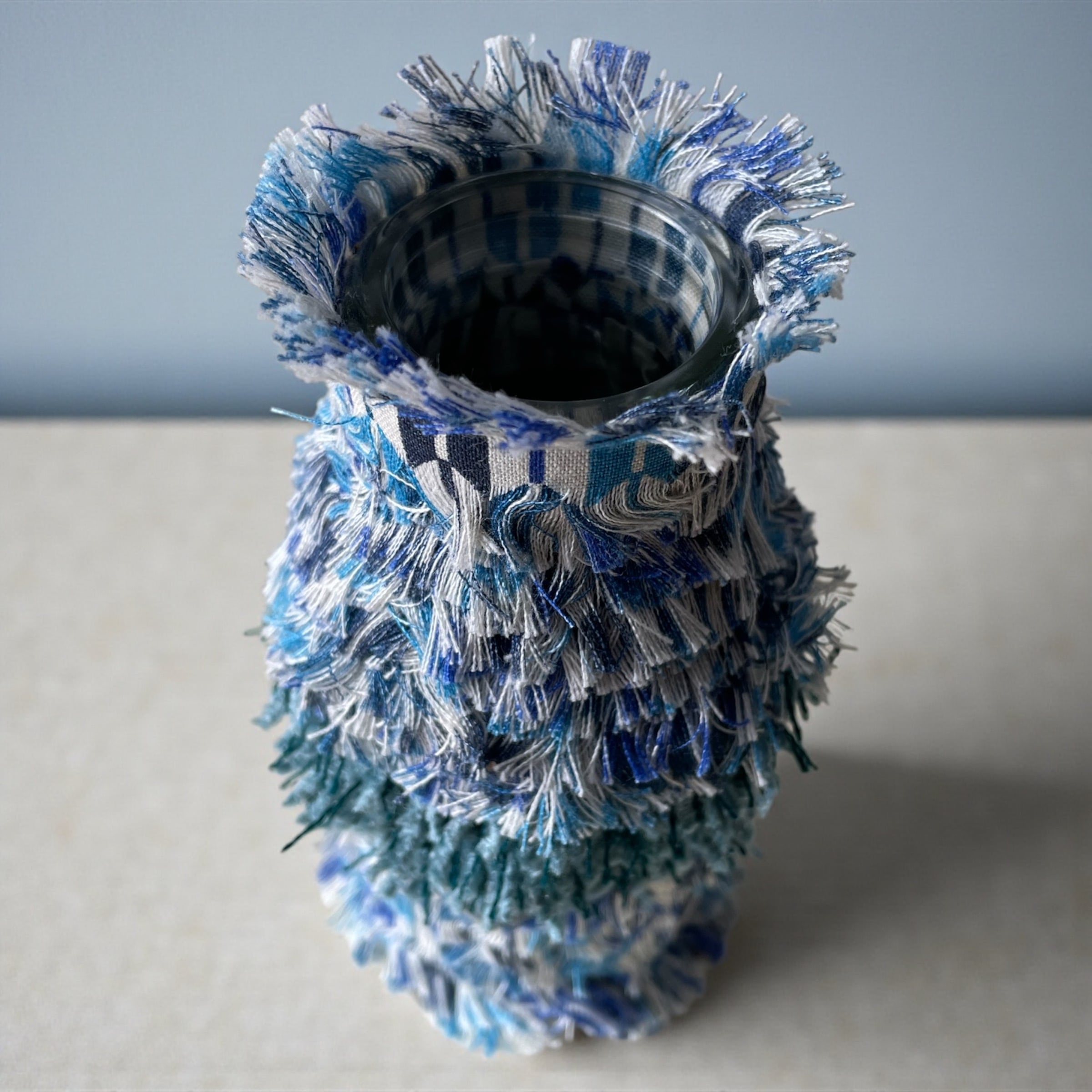 唯一無二のBINシリーズは、廃棄された瓶に古布や糸を装飾したアート作品です。
