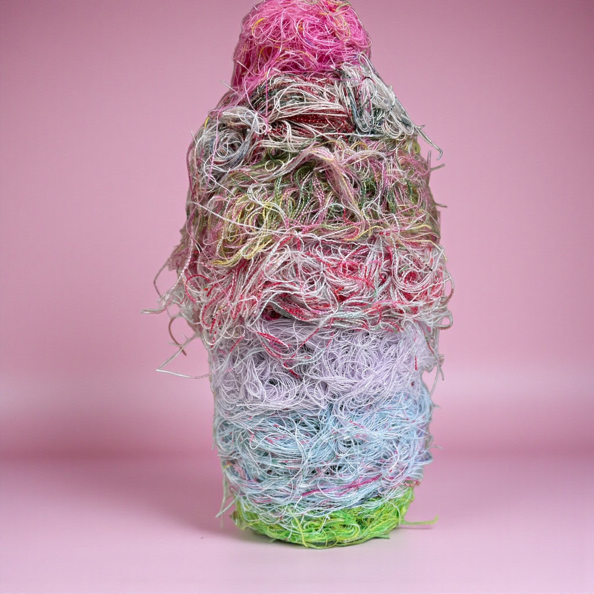 唯一無二のBINシリーズは、廃棄された瓶に古布や糸を装飾したアート作品です。