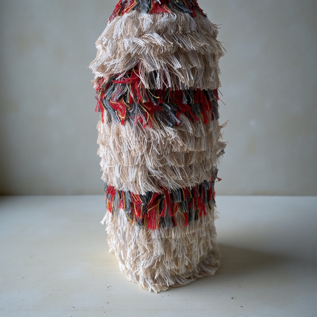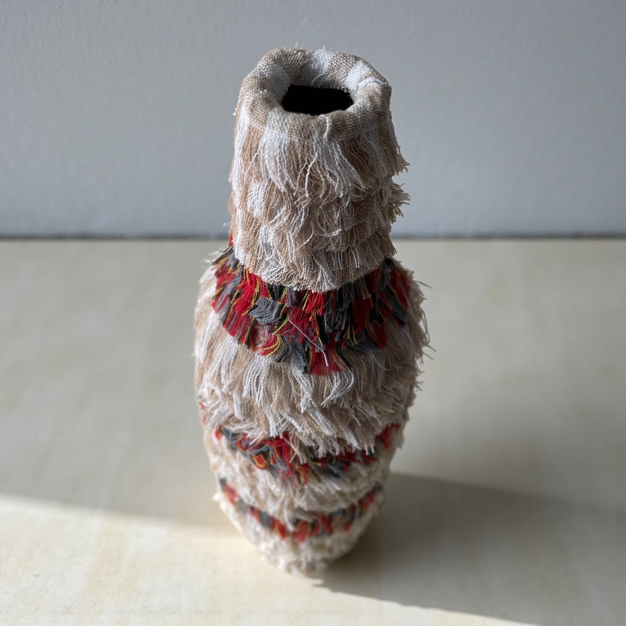 唯一無二のBINシリーズは、廃棄された瓶に古布や糸を装飾したアート作品です。